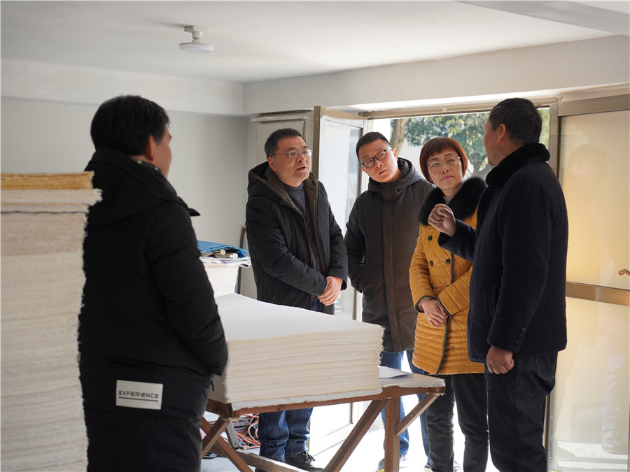 2021年1月26日,休寧縣政協(xié)主席儲曉華來公司調研徽州楮皮紙制作技藝傳承和發(fā)展情況。