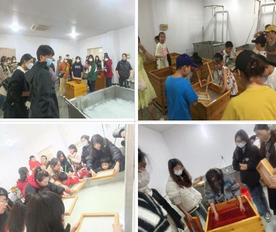 活動流程:撈紙演示→體驗指導→師傅曬紙→徽州皮紙制作完成→包裝→游客帶走。(在演示至體驗過程中同步講解相關知識。)
